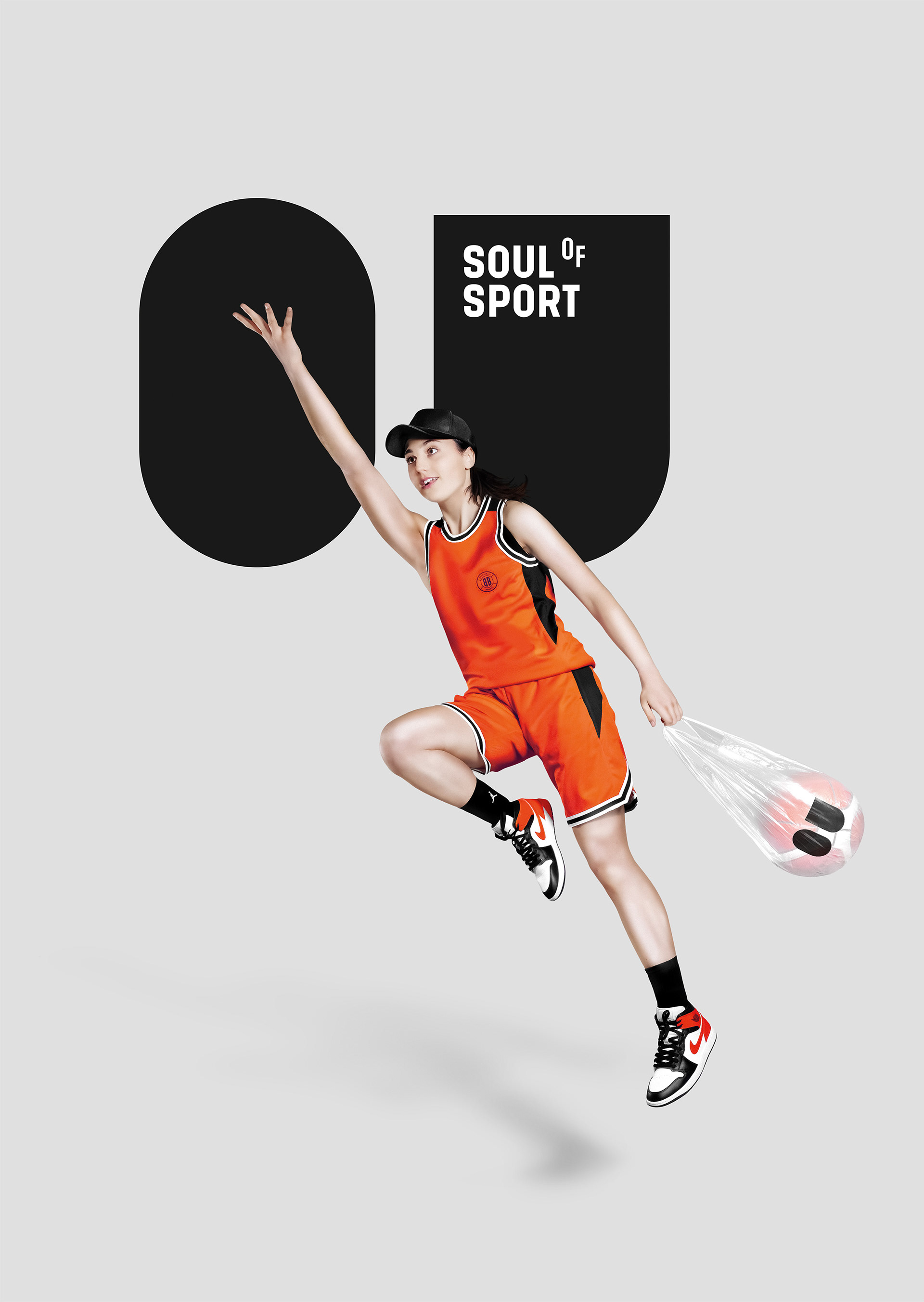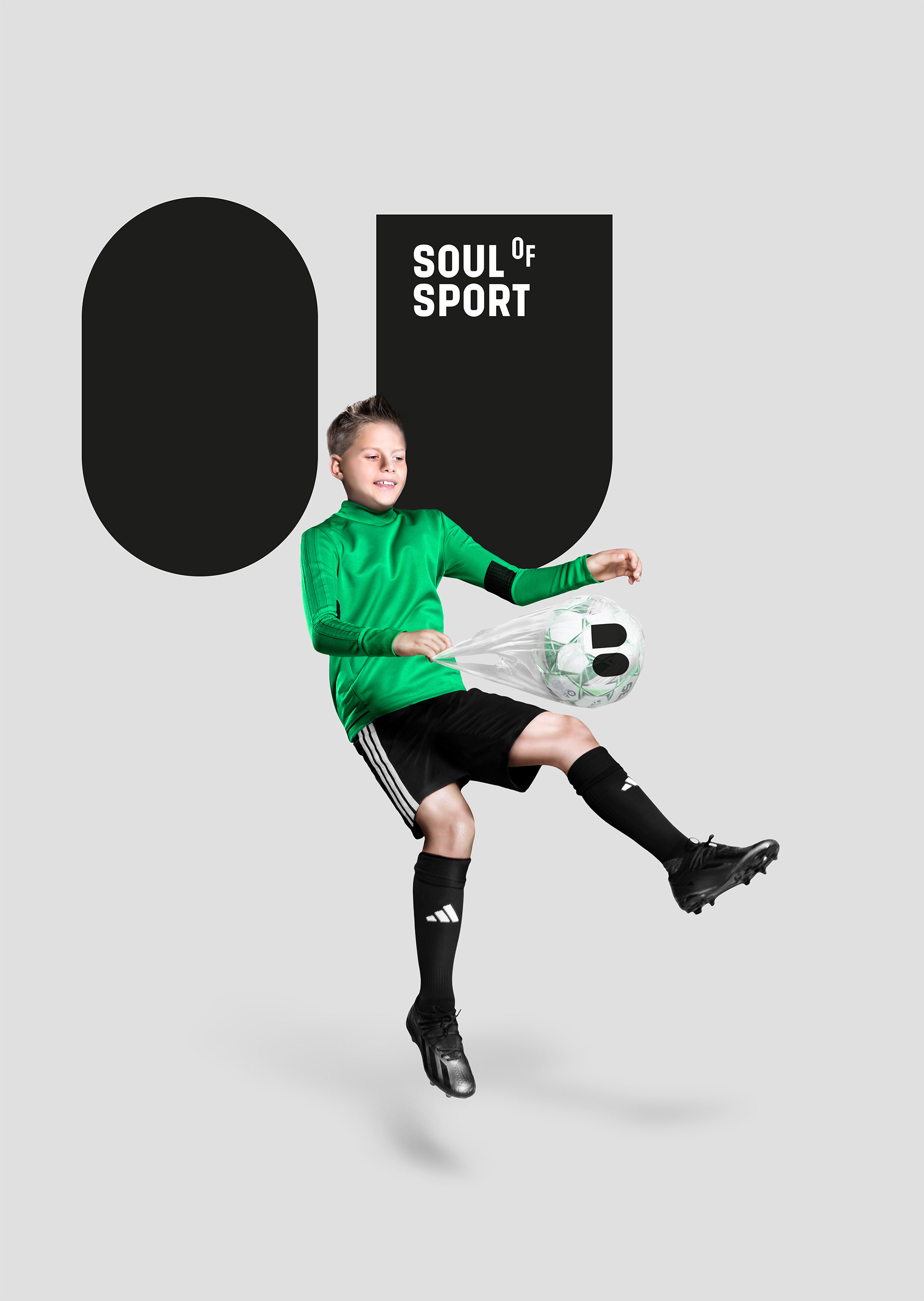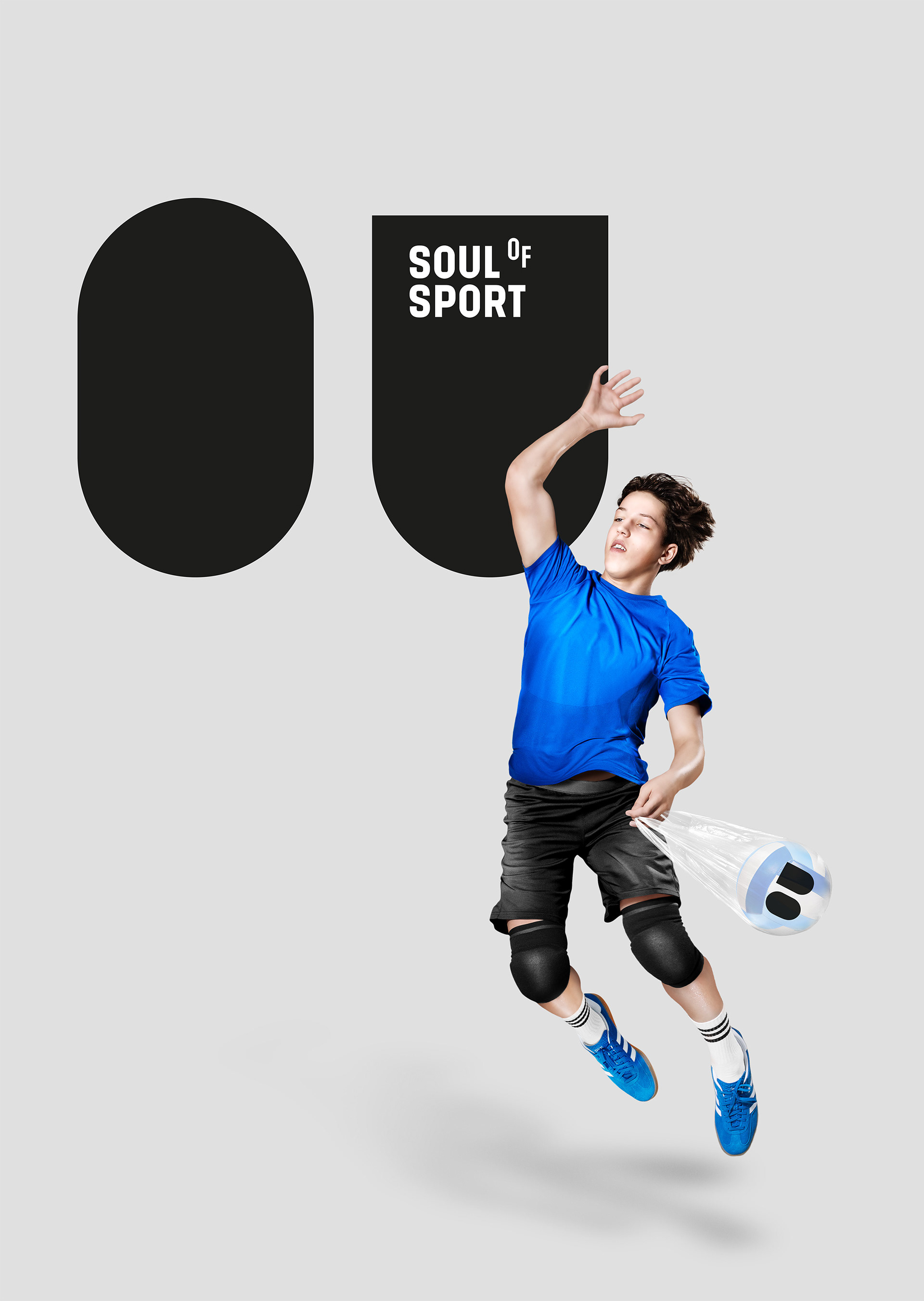 Vizuální identita projektu, který připomíná, že výkon je jen část příběhu. Logo vychází z písmen OU – očí sportovní duše – a doplňuje ho typografie s vznášejícím se „o“, symbolem lehkosti a nadhledu. Fotografický styl propojuje postavy s jejich duší, ukrytou v igelitce s balónem a očima. Barevnost čerpá z typických sportovních povrchů: oranžové kurty, modré haly a zelené trávníky.